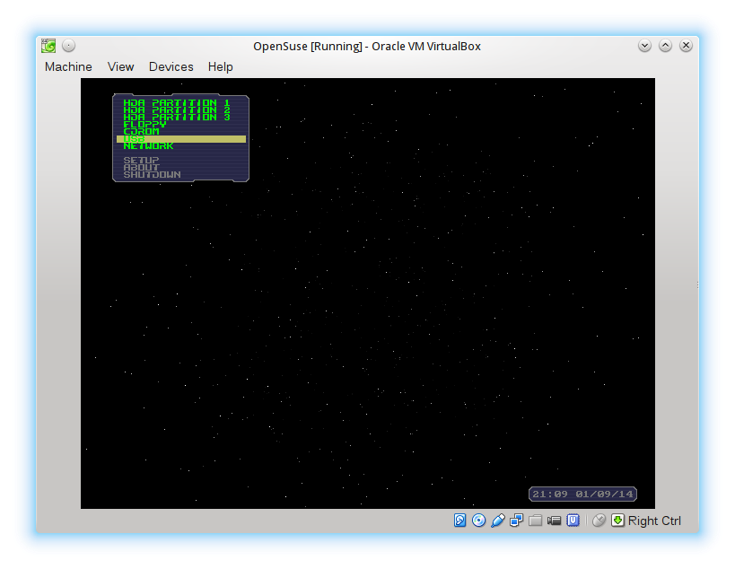 После чего окно настроек можно закрыть и запустить вирутальную машину. В результате у нас должен отобразится примерно такой экран загрузки:
